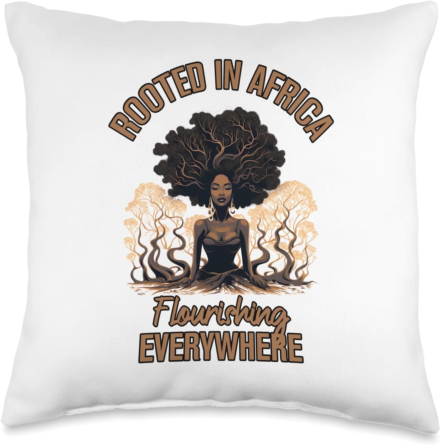 African Roots Blossom, Empowering Women’s Tee, Flourishing Throw Pillow
