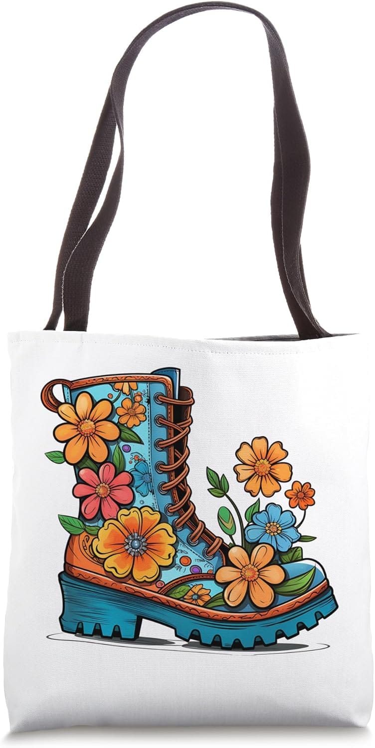 Bohemian Flower Boot Hippie Chic Tote Bag