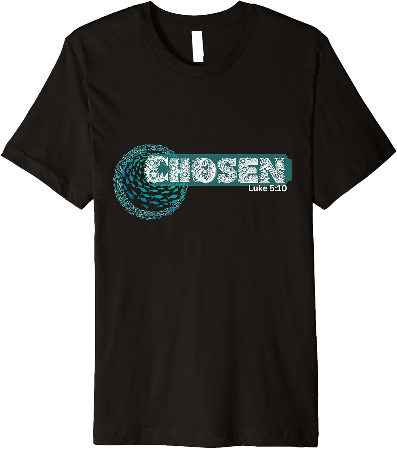Chosen tee x Fish swim against current x Bible verse” Luke 5:10 “Jesus to Simon.“From now you’ll be catching people.