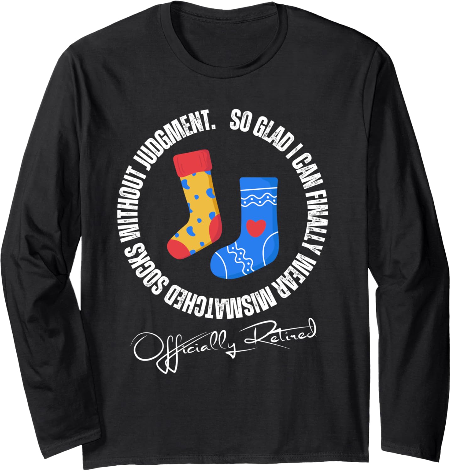Mismatched socks without judgment, funny retired people