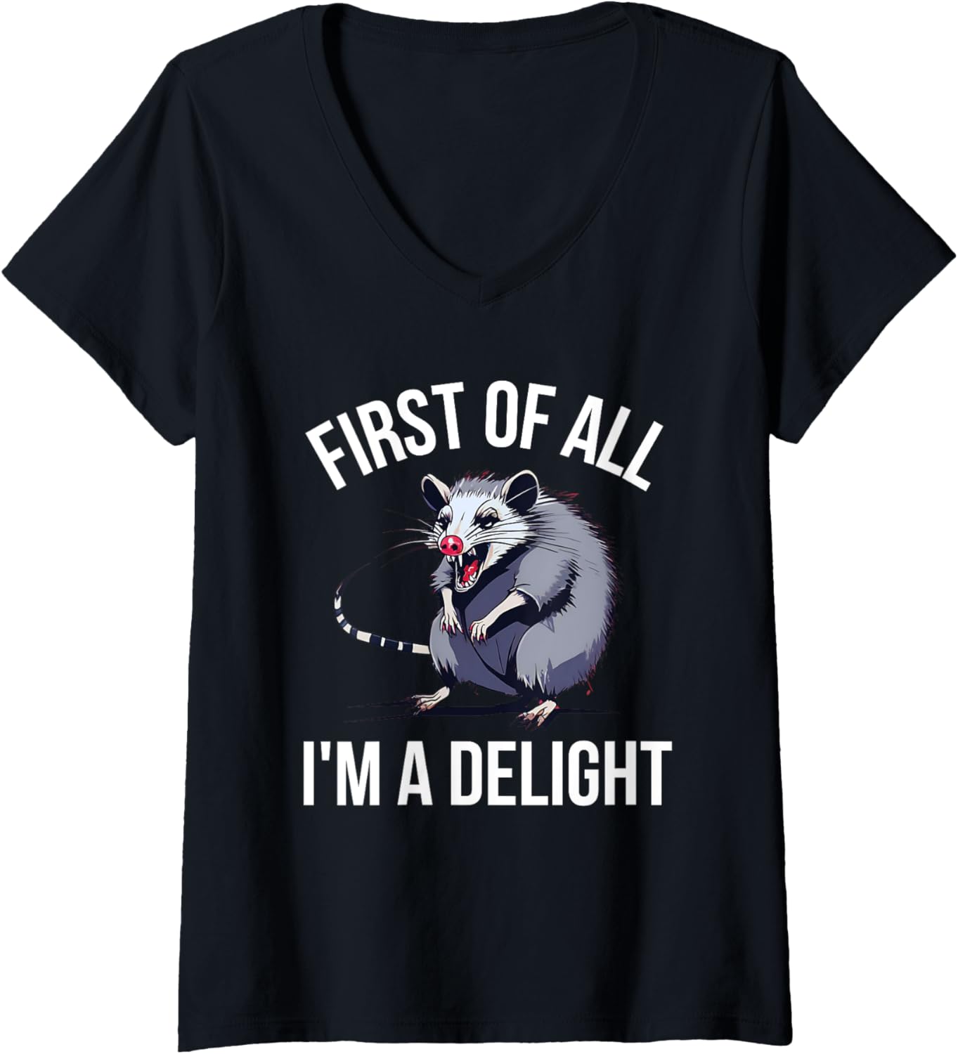 Sarcastic Angry Opossum First Of All I’m Delight V-Neck T-Shirt