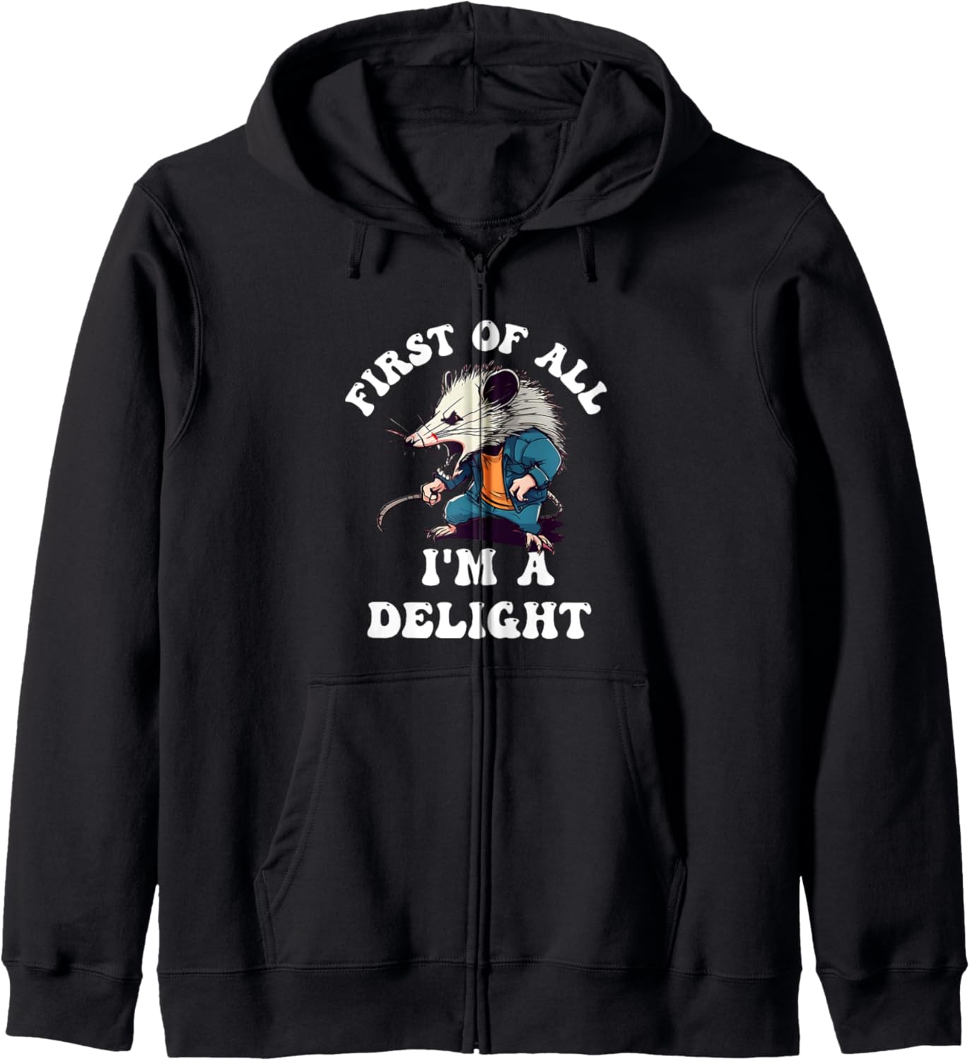 Sarcastic Angry Opossum First Of All I’m Delight Zip Hoodie