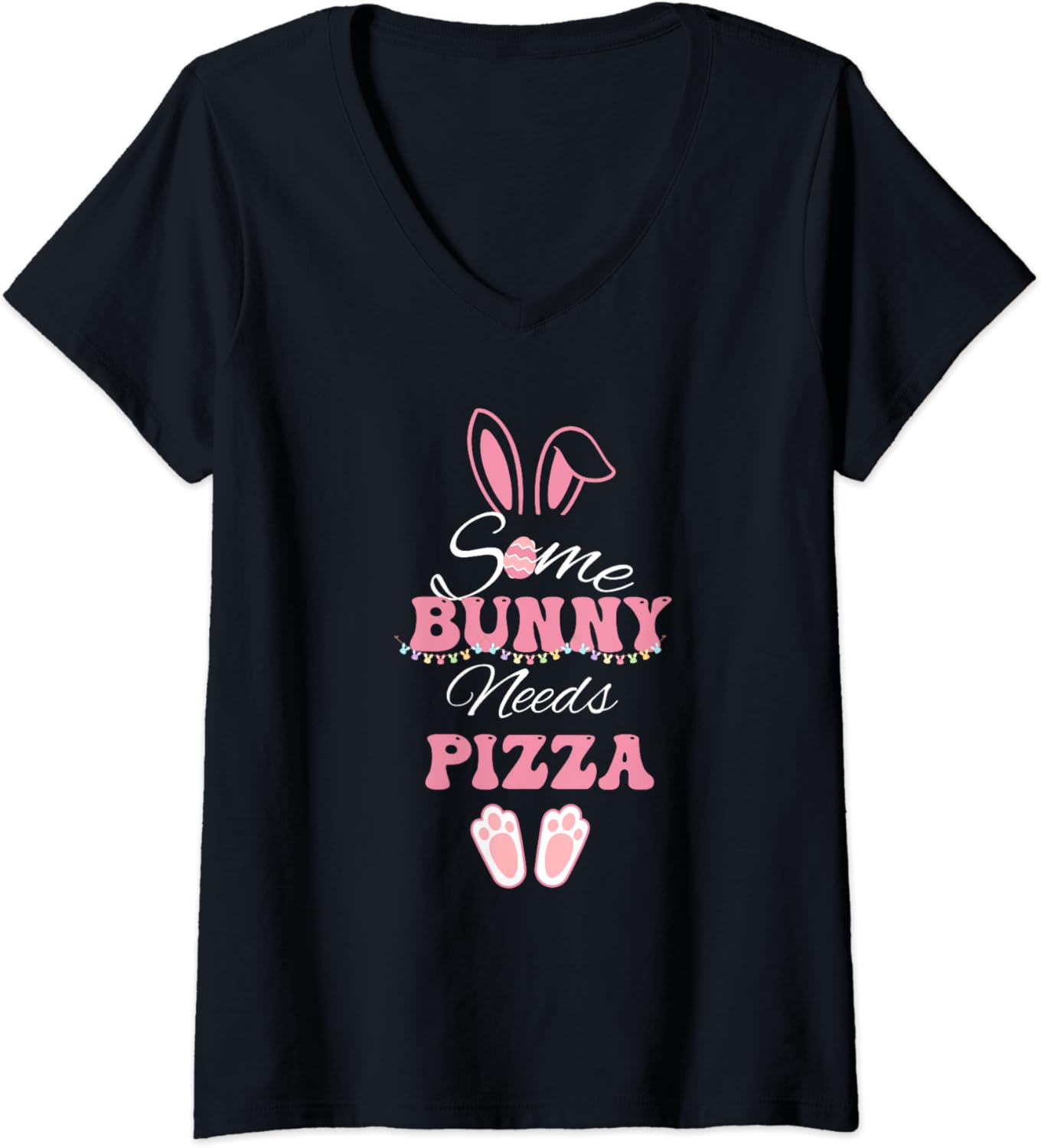 Some Bunny needs Pizza funny Easter V-Neck T-Shirt
