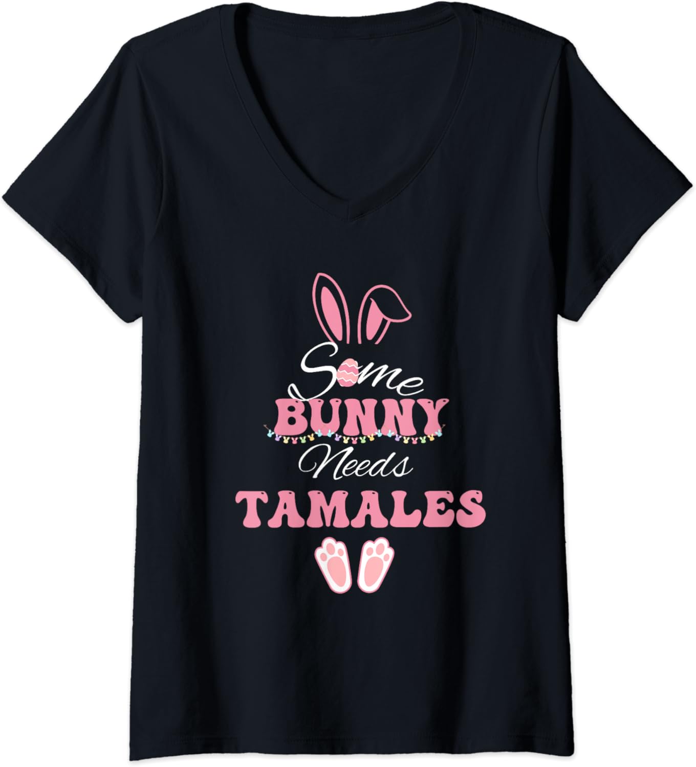 Some Bunny needs Tamales funny Easter V-Neck T-Shirt