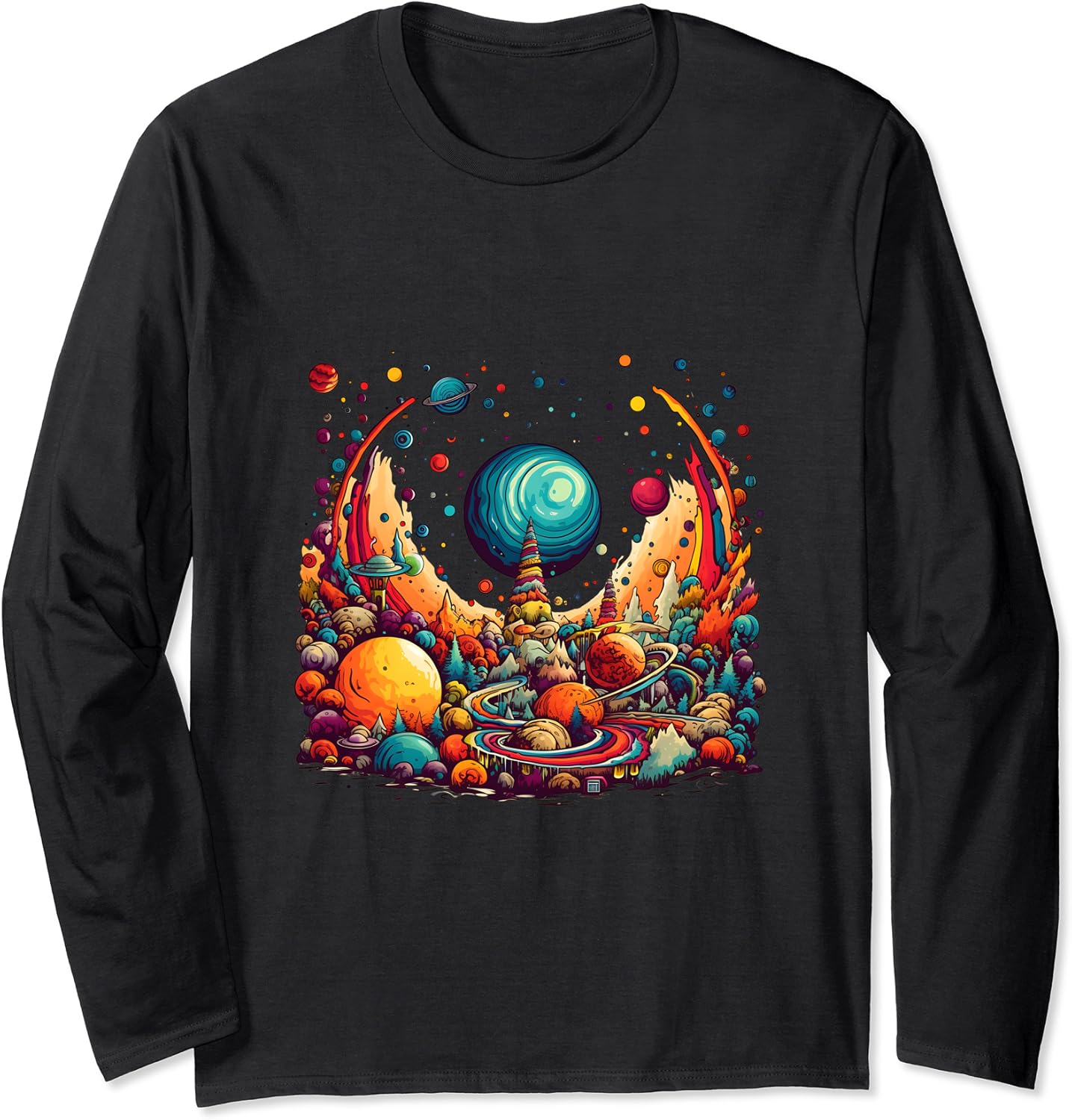 Vivid Dreamscape Harvest Psychedelic Art Long Sleeve T-Shirt