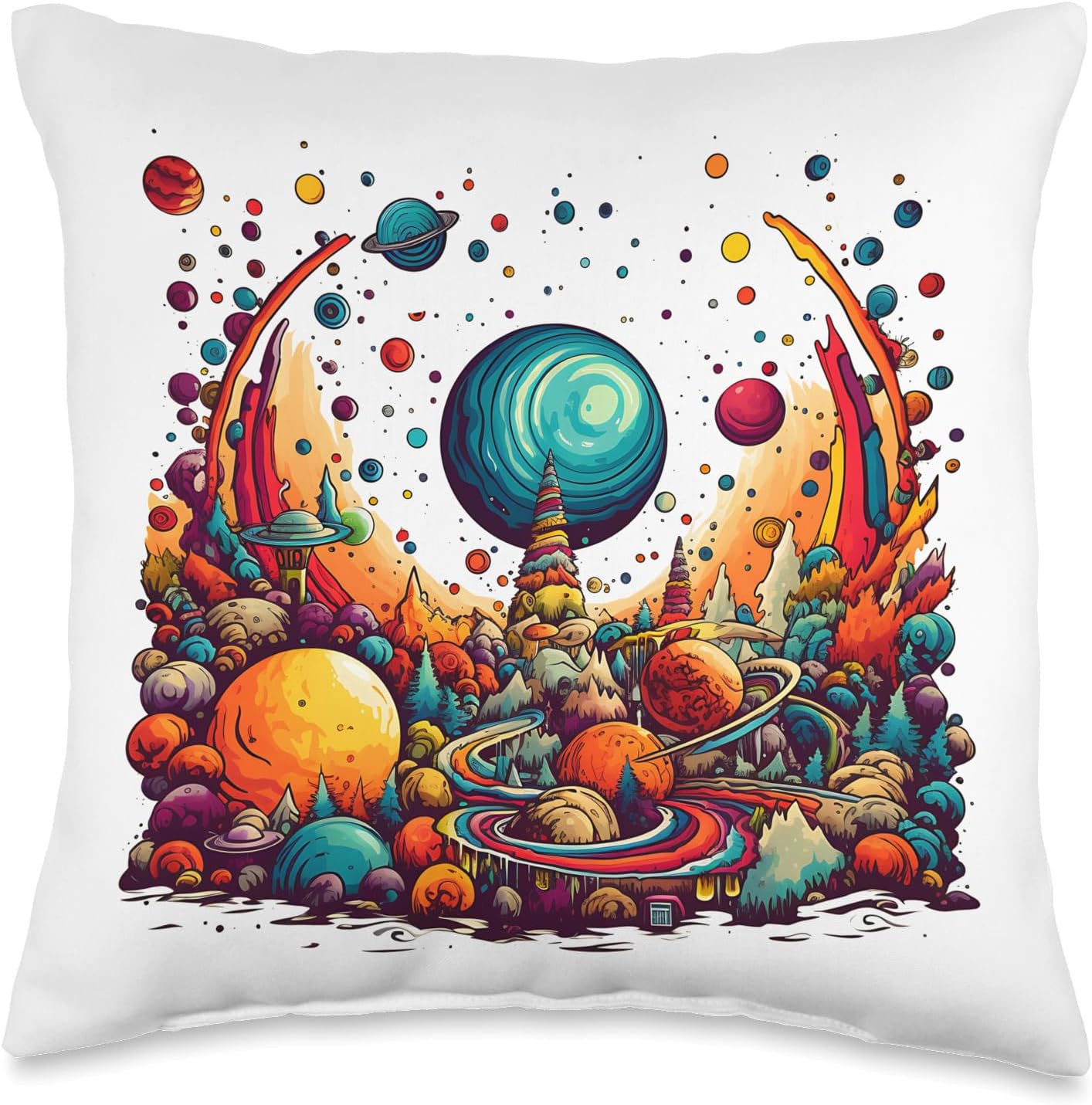 Vivid Dreamscape Harvest Psychedelic Art Throw Pillow