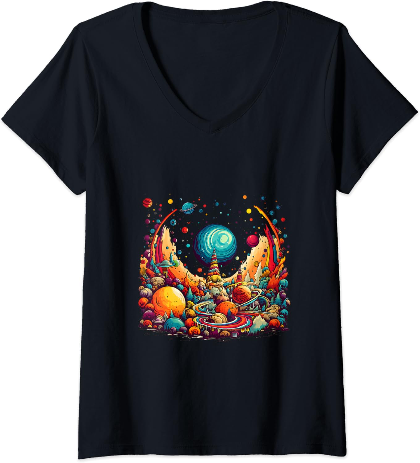 Vivid Dreamscape Harvest Psychedelic Art V-Neck T-Shirt